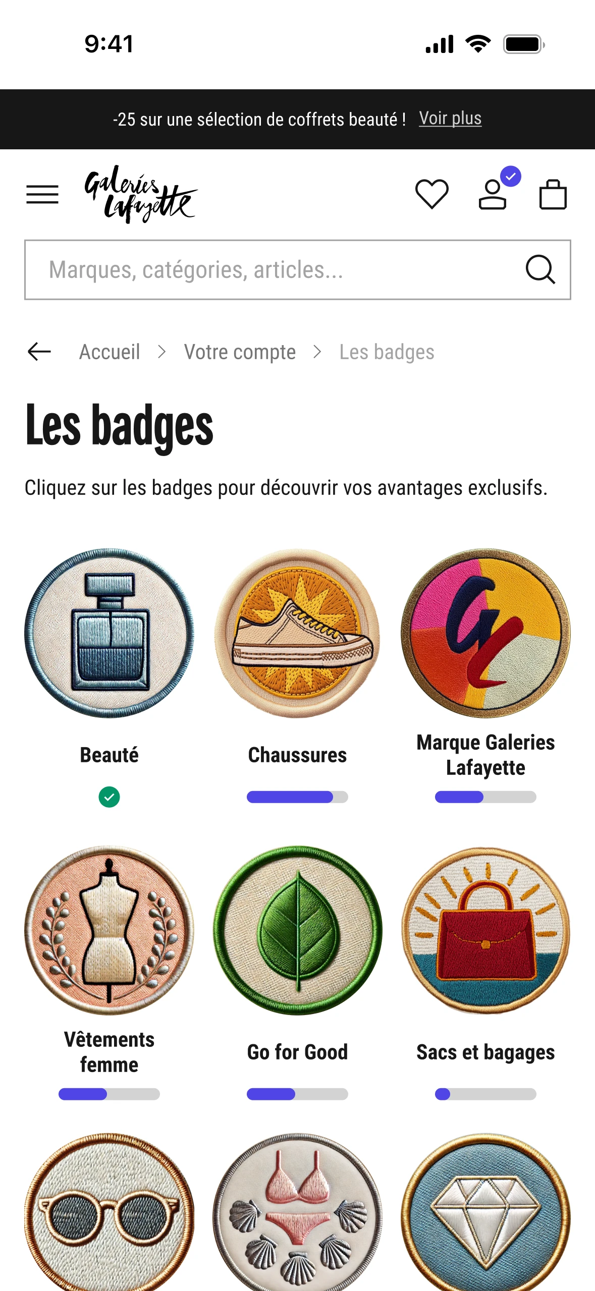 Depuis 2023, je contribue à la refonte de l'écosystème digital (web & app) des Galeries Lafayette, dans un contexte de transformation du retail vers le e-commerce.